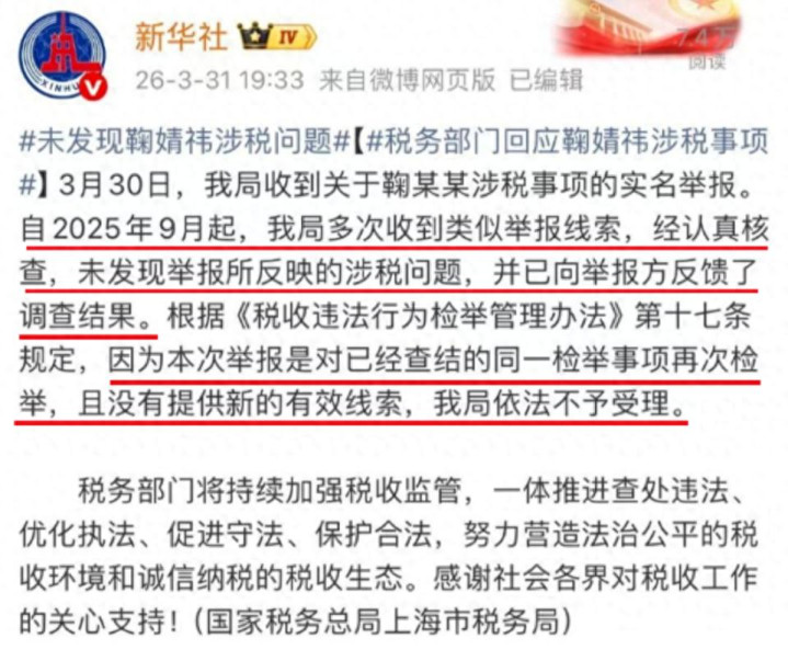 而这次税务的回应,已经在法律框架内,把能做的事做到位了:一手保护检举权,一手保护守法者,舆论风浪短期内还能起,但想再翻出什么惊天大案,难度已经非常高。